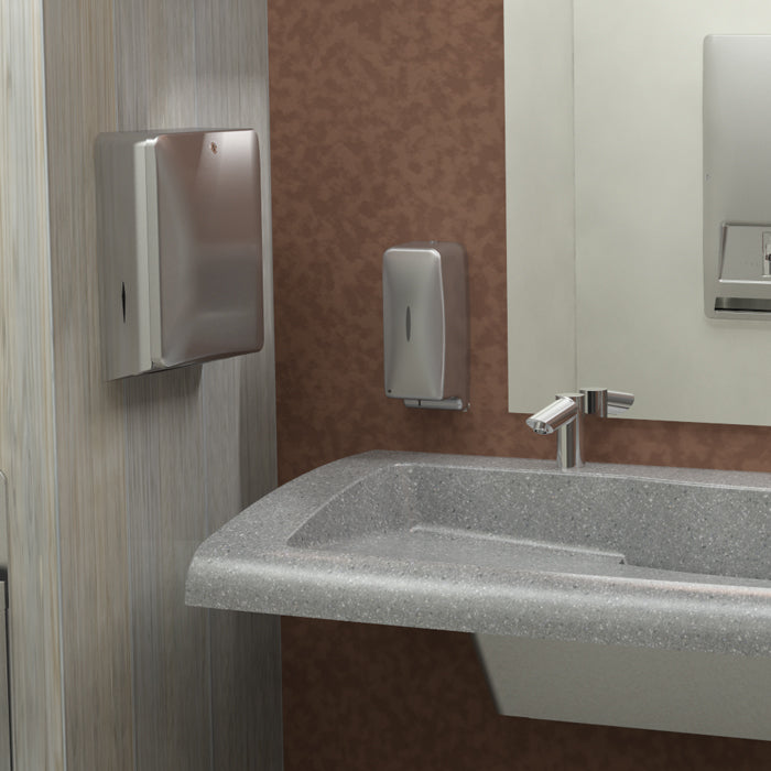 This soap dispenser from Bradley’s Diplomat collection will blend perfectly into your restroom. It is suitable for the distribution of bulk foam soap, which is an economical solution for the owner. Made of stainless steel, this dispenser is sturdy and durable. It is also equipped with a lock that protects it from vandalism. Thanks to its sight window, you will easily know when it's time to refill.