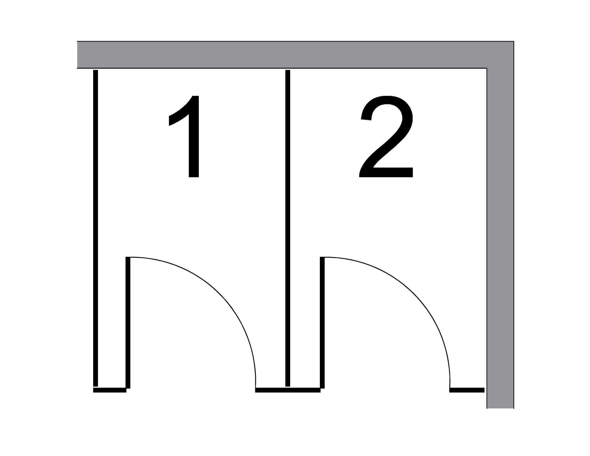 Right corner partitions with 2 compartments/no accessible compartment/Metal Light Grey